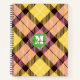 Modern Pink Yellow Tartan Custom Monogram Script Notebook