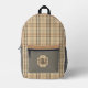 Add a timeless style to your wardrobe accessories with the Modern Plaid Parchment Printed Backpack. Personalize with your initials or text.