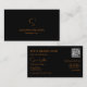 Modern Plain Black Orange with Monogram QR-Code Business Card