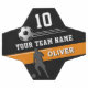 Modern Player Name Number Team Soccer Ball. Sleek soccer, football design! Featuring black and orange colour scheme, bold lettering, realistic soccer graphics, this sporty design is perfect for any soccer fan. The design showcases dynamic player silhouettes, a soccer image and stripe details. Add your player's name, number and team name.