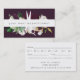 Modern elegant ivory white and dark plum purple flowers with lush green foliage adorned white salon scissors, logo style design, appointment cards. Text colour and font style can be customized. Professional design template with multiple lines for your information. Card features lines for appointment info., including name, day of the week check box, date and time.