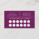 Elevate your salon branding with the Modern Plum Hairdresser Flat Loyalty Card, designed to leave a bold and stylish impression. Featuring a sleek layout with striking plum accents, this card reflects confidence, creativity, and modern beauty trends. The clean, professional design makes it easy to track client visits while reinforcing your brand identity. Printed on high-quality cardstock, it offers durability that withstands frequent handling in a busy salon environment. Its compact size fits perfectly in wallets, making it convenient for clients to keep and use. Ideal for rewarding repeat customers, this loyalty card helps build lasting relationships while enhancing your salon’s professional image.