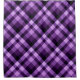 A shower curtain featuring a beautiful diagonal plaid pattern design in plum purple.