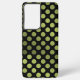 Green shimmering polka dots on black phone case. (Polka dots don't actually shimmer and were digitally created.) You can transfer this design to other phone cases.
