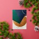Abstract Geometric Art Modern poster minimalist with overlapping triangles and circles in jewel tones (emerald, sapphire, amber). Metallic gold accents and ‘Find Your Balance’ in tiny font.