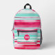 Modern Preppy Cyan Magenta Monogram Printed Backpack