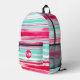 Modern Preppy Cyan Magenta Watercolor Stripe Pattern Monogram Personalized Name Backpacks features your personalized name, monogram or initals in a simple script typography on a modern cyan and mageneta watercolor stripe background. Perfect for back to school, sports, gym and more. Designed by ©Evco Studio www.zazzle.com/store/evcostudio