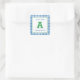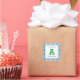 A colourful, preppy monogram gift tag with a blue gingham pattern green accents is perfect for any occasion.