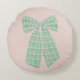 Modern Pretty Blush Gingham Romantic Coquette Bow Round Pillow