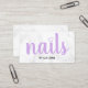 Modern pretty white marble & purple nails business card