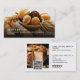 Custom bakery business cards with photo and QR code, featuring a stylish and professional design ideal for bakeries, pastry chefs, wedding and event caterers, or dessert shops aiming to highlight quality. The front showcases a custom photo of your products paired with elegant white text for a cozy, high-end feel. On the reverse side, a second photo creates visual appeal with a scannable QR code, and prominent social media icons that encourage online engagement and brand connection. This design balances charm and professionalism, making it perfect for businesses focused on fresh offerings, personalized service, and building a strong local or digital presence.