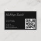 Modern Professional Black White Minimal Script Business Card. Modern black and white design. Features signature script handwritten font. Qr code can be replaced with a logo. Custom orders are available at trullc@gmail.com