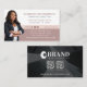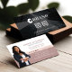 The front of the business card features a cutout photo placeholder to display your own cutout business photo. A simple and professional layout neatly displays the name, title, address, contact details & social media handle along with 6 social media icons. The reverse side is designed in a simple layout with a photo background placeholder to display your own background image on the backside of the card with a deep grey transparent photo overlay. Personalize with two of your own QR Codes. Note: in order for the design to look like our sample template, you must upload your personal business photo with a transparent background in PNG format. You can customize the text size, font, colours, and background colour to suit your own personal preference.