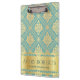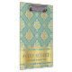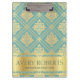 Modern Professional Metallic Floral cyan gold Clipboard