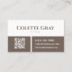 Make a strong first impression with this modern and professional business card design. Featuring a clean two-tone layout in taupe and white, this design highlights your name and business details with timeless typography for a polished, sophisticated look. The front displays your business name prominently, while the back organizes your contact information and QR code in a clear, easy-to-read layout—perfect for quickly connecting clients to your website, portfolio, or social media. The minimalist style ensures your card feels both contemporary and versatile, making it suitable for a wide range of professionals.