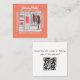 Modern and square business card features watercolor sectioned closet graphic - perfect for those who may be professional organizers, closet designers or even wardrobe consultants. Customizable on front and back, including a custom QR code for your social media, website or blog.  Coral pink background with white handwriting style fonts.