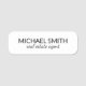 This name tag features name in black modern sans serif font style and title in black modern script font style on white background.