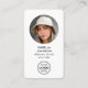Impress with a stylish and professional business card. This double-sided template features your photo in a circle, and is personalized with a name, logo, contact information, and a scannable QR code. Customize the text to match your brand. This modern design would suit many different professions, including fashion stylists, beauty consultants, photographers, boutique owners, makeup artists, influencers and more! Printed colours: black and white.
