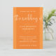 This stunning wedding invitation features a trendy, bright papaya orange background with lighter matching borders, and modern handwritten script typography. A simple and contemporary look with an ampersand flourish and bold matching text.