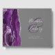 This elegant wedding guest book features a purple watercolor agate design trimmed with faux silver glitter. Easily customize the silver grey text on a medium grey background, with the names of the couple in whimsical handwriting calligraphy over a large purple ampersand. Add additional text of your choice to the front and spine.