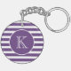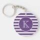 Modern Purple and White Stripes with Monogram Keychain