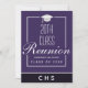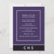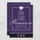 Send your 20th class reunion classmates our modern flat card invitation. This elegant design template features a purple and black background with white typography that reads "20th Class Reunion" with your school name and year to personalize Below is your school's monogram. The back of the card has more of your celebration details for you to customize. Designed by world renowned artist ©Tim Coffey.