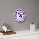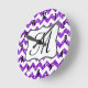 Modern Purple Glitter Chevron Zig Zag Stripe Fabric Print Pattern Monogram Initial Wall Clock Personalized