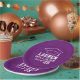 Custom round graduation paper plates features a purple and white design (can be modified via "Customize It!") with a graduation cap and custom text for the grad's name and class year.