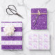 Add a beautiful sparkling detail to your holiday gifts during the Christmas season with this festive set of wrapping paper sheets. A cute purple pink rainbow reindeer silhouette accents the centre of the first sheet contrasted by purple glitter stripes. The second sheet focuses on an the purple pink rainbow reindeer silhouette pattern on a white background. The third sheet compliments the set with an emphasis on a purple glitter design. Please contact the designer if you need assistance with the design or matching products.