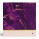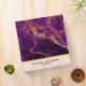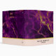 A personalized binder with a beautiful abstract pattern featuring a marble design. Rich purple colours blending together combined with faux-gold swirling ribbons of colour mixing and mingling throughout the design. A peach coloured layer below the pattern with an elegant faux gold-foil strip between them.