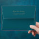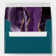 The inside of this elegant modern wedding invitation envelope features a purple watercolor agate design trimmed with faux gold glitter. Customize the back flap with the names of the bride and groom in gold-coloured handwriting script and return address in copperplate font on a teal blue background.