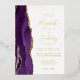 The left-hand edge of this elegant modern wedding invitation features a purple watercolor agate border trimmed with faux gold glitter. The customizable text combines handwriting, copperplate and italic fonts in real gold foil on a white background. The reverse side features a matching purple and gold agate design.