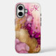 Modern Pink Purple Gold Marble Monogram Personalized iPhone 16 Cases features your personalized monogram in an elegant calligraphy script typography on a modern pink, purple and gold marble background. Perfect gift for her for birthday, mom for Mother's Day, Christmas and holidays. Designed by ©Evco Studio www.zazzle.com/store/evcostudio