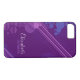 Modern grunge splatters and diagonal stripes design in purple and indigo blue, iPhone 7 case with space for custom name / text - or delete if plain is preferred