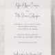 Elegant wedding all in one invitation featuring a simple and classic design with your names in a modern script and your event details in a combination of traditional serif and italic fonts.