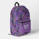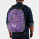 This modern purple camo leaves backpack features a botanical camouflage pattern and monogrammed initials. It's a traditional patterned design with a pretty and girly update that would be cute for a girl to carry her school or sports gear. Grab one for back to school time, or as a feminine addition for her to use for travel, camping, hiking, or anywhere you'd need to carry supplies. Great for kids, tweens, a teen girl, or adults.