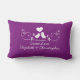 Modern cute Love Birds Personalized Throw Pillows featuring a cute pair of love birds sitting on a flourish branch with a heart set on a purple background. Personalize with your names & wedding date .... The back of the pillow features the same chic love bird graphic and can be personalized with a sweet love saying. Available in our shop in a large assortment of colours.