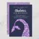 Modern purple rhinestone crystals mermaid tail girls birthday party invitation set on a midnight blue background with a coordinating pink glitter back for an extra special touch.