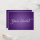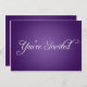 Cette invitation moderne de fête violette est parfaite pour toutes les occasions. Elle présente un dégradé radial noir sur le devant avec une police scriptée élégante qui indique "Vous êtes invités". Parfait pour les événements d'entreprise ou les soirées cocktail ! Tout le texte au verso est entièrement personnalisable. Ajoutez les détails de votre fête !