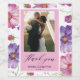 The Modern Purple Pink Blossom Script Photo Wedding Thank You Wine Label is a heartfelt way to express gratitude to your loved ones. Featuring your favourite wedding photo as the centerpiece, this label is a personalized keepsake that friends and family will cherish. The design is elegant and timeless, with space for a custom message of appreciation to show your heartfelt thanks.