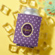 This can cooler features a trendy polka dot pattern on a custom purple background. Personalize it with a yellow name and a purple monogram. Click on Customize further to change the background colour and the font style of the name and monogram.