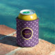 Modern Purple Polka Dots With Name Monogram Can Cooler