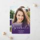 A modern, simple purple script graduate with 4 photos graduation announcement. Add your message at the back.