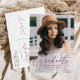 Invite guests to celebrate the grad with our stylish photo graduation invitation postcards. The graduation invitations feature the graduate's vertical photo with "Graduate" in a purple modern calligraphy script overlay. Personalize the front of the modern graduation invite by adding the graduate's name, school name, and graduation year. The graduation postcard reverses to display your return address and graduation party details.