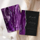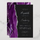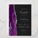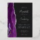 The left-hand edge of this elegant modern wedding invitation features a purple watercolor agate border trimmed with faux silver glitter. The customizable text combines handwriting, copperplate and italic fonts in real silver foil on an off-black background. The reverse side features a matching purple and silver agate design.