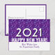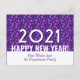 Modern, stylish HAPPY NEW YEAR 2021 Postcard, showing a design of snowflakes against a rich purple background. The year 2021 appears in large white text, together with HAPPY NEW YEAR. Underneath there is CUSTOMIZABLE text which you can personalize with your name. On the reverse, there is a placeholder message. ALL TEXT IS CUSTOMIZABLE so you can personalize this card with your own details. Ideal to send to family, friends, corporate clients and customers. Other versions of this design are available in the NEW YEAR Collection by Berean Designs.