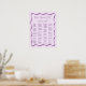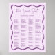Guide your guests with ease using this Modern Purple Wavy Frame Wedding Seating Chart Poster. A light purple background and bold purple wavy border frame your guest list, displayed in alphabetical order for simple navigation. At the top, “Find Your Seat” is highlighted in a handwritten purple script, with your names and wedding date featured below. Functional and stylish, this seating chart poster is available as a professional print or instant download.