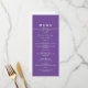 Add a stylish touch to your reception tables with this modern purple wedding menu card. Featuring a deep violet background, romantic silver rope heart, and elegant calligraphy script, this design beautifully highlights your wedding meal selections while complementing your sophisticated wedding theme.