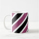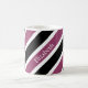 This mug features a diagonal striped pattern in white, black, and purple. Personalize it with your name in white font placed diagonally over the purple stripe.