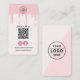 Meet our Bakery Business Card – a perfect blend of style and function! This unique card features a trendy pink drip design, Instagram and Facebook logos, and a QR code for seamless social media connection. Stand out effortlessly while providing all essential details in one stylish package. Elevate your bakery's image with this eye-catching and practical business card!